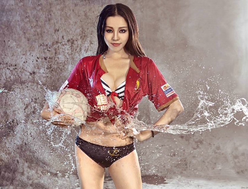 性感诱人娇艳红唇足球宝贝惹火乳沟火辣诱惑迷人户外写真