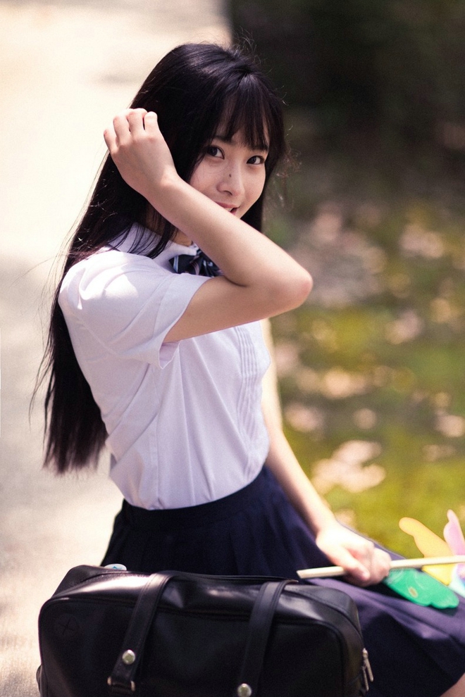 清纯阳光靓丽直发美女学生装短裙清新户外娇巧甜美阳光唯美写真